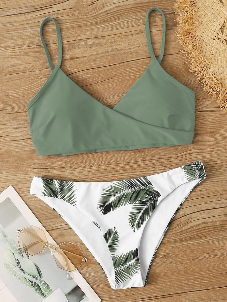 Biquíni moderno e delicado que une praticidade e estilo. O contraste entre o top liso e a calcinha estampada traz equilíbrio visual, criando um look tropical e sofisticado.