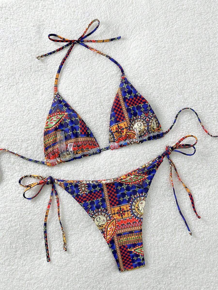 Modelo: Cortininha tradicional com amarrações no pescoço, costas e laterais da calcinha.